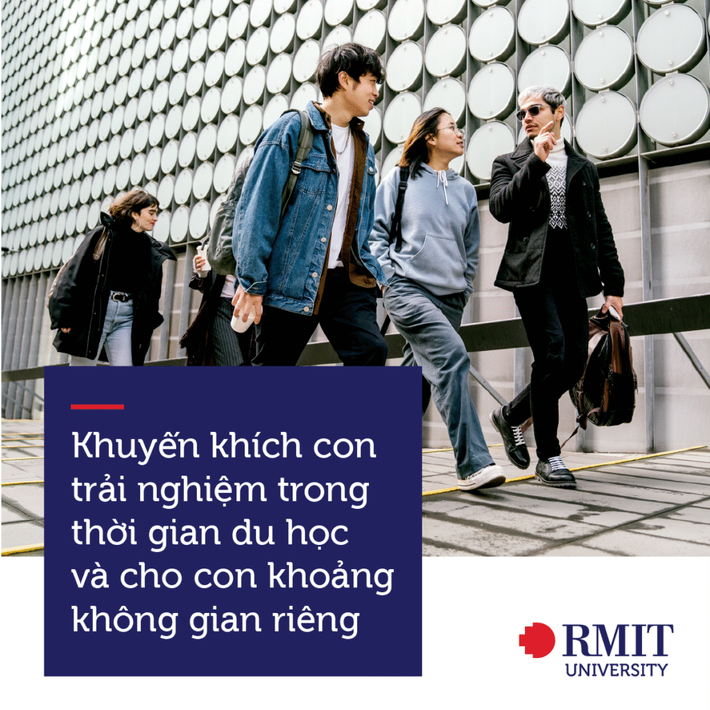 Nhân dịp gần 500 sinh viên RMIT Việt Nam học kỳ vừa qua lên đường du học trao đổi tại nhiều quốc gia trên thế giới, chúng tôi muốn chia sẻ một số điều cha mẹ có thể làm để hỗ trợ con trong thời gian con học tập tại nước ngoài. Bởi lẽ, chúng tôi hiểu rằng, việc để con đi xa như vậy có thể khiến cha mẹ có không ít lo lắng. Không biết con ở một mình xoay xở thế nào? Con sang đó có tập trung học hay không? Con có bị nhớ nhà không?..